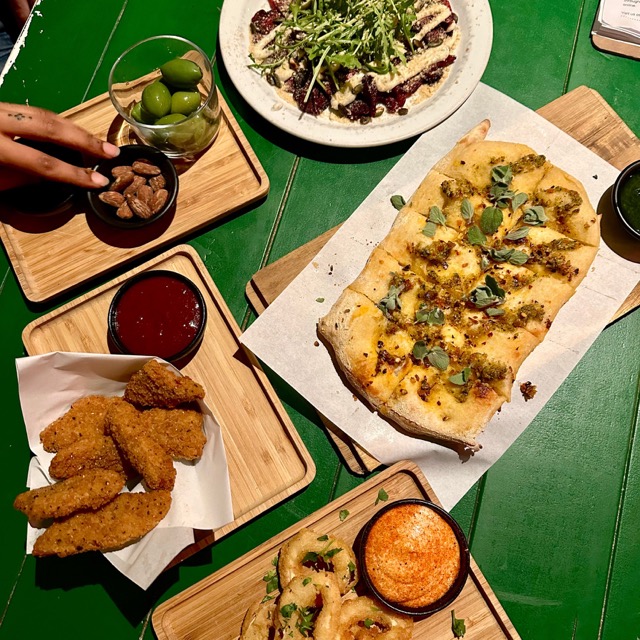 Bij de Vegan Pizza Bar draait het niet alleen om pizza. De avond begint al goed met starters die je smaakpapillen prikkelen. De homemade focaccia is luchtig, knapperig en perfect om te delen. Of kies voor de Pre-Tendies met dip – vegan fried chicken tenders die zó lekker zijn dat je bijna vergeet dat ze plantaardig zijn. De Capo Carpaccio van geroosterde biet met truffelmayo is een verfijnde keuze, terwijl de calamari met aioli je meevoert naar een zonovergoten kust, helemaal vegan-style.